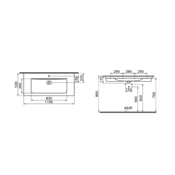 Vanity Top Basin with Taphole. Suitable for Short Basin Mixer with Mounting vanity top.
